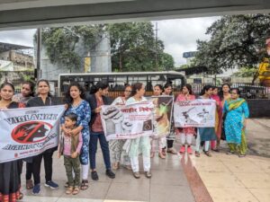 संभाजीनगर: महिलांवरील अत्याचाराच्या वाढत्या घटनांचा निषेध करण्यासाठी महाराष्ट्र स्टेट बँक एम्प्लॉईज फेडरेशन महिला अघाडि च्या वतीने क्रांति चौक येथे निदर्शने आयोजित करण्यात आली. विशेषतः कोलकाता आणि बदलापूर येथे झालेल्या अत्याचाराच्या घटनांचा तीव्र निषेध व्यक्त करण्यात आला आणि सरकारकडून कठोर कारवाईची मागणी करण्यात आली.